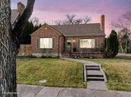 Built in 1942, this classic brick cottage sits across from Mineral Palace Park. A wide front porch offers a place to pause and look out over the park while mature trees frame the setting. Inside, the living room is comfortable and easy with a classic wood-burning fireplace. Just beyond, a true formal dining room draws in light through a glass door and windows to the backyard. The kitchen offers generous cabinet and counter space along with an eat-in area flooded with afternoon sunlight. Two bedrooms are located on the main level, each with walk-in closets and built-in storage. The bathroom is in remarkable condition with detail and craftsmanship which give the home its character. Multi-pane casement windows bring in natural light throughout. Smooth ceilings with classic coved edges remain true to the home’s original design. An enormous upper-level bonus space adds flexibility while the finished basement includes a rec room with a second fireplace, a third bedroom, a half bath, a spacious laundry room and a large storage area which could easily become a craft or hobby room. The backyard is small but inviting, edged with evergreen hedges with seating beneath a pergola and additional shade from large umbrellas. Off-street parking is available from the alley. Opportunities like this are rare, as homes with open park views here tend to be deeply loved, carefully kept, and rarely released back to the market.